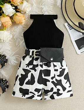Mädchen 3D Einfarbig Leopard-Druck Tank-Top und Shorts Ärmellos Sommer Mode Lässig Kleinkind Ab 4 Jahren Outdoor Lässiger Schnitt