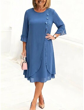 Damen Midikleid Chiffonkleid Cocktailkleid Elegant Mode Outdoor Urlaub Ausgehen Lässiger Schnitt Einfach Langarm Rundhalsausschnitt Blau Schwarz Sommer Frühling