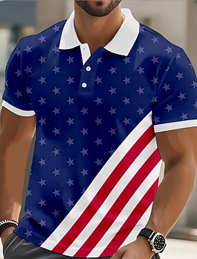 4. Juli 2026 250. Herren Amerikanische US-Flagge Poloshirts Kurzarm Polo-Shirts Hemden mit Kragen Lässig Athleisure Knöpfe Frühling & Sommer Blau Blau 1