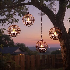 Solarbetriebene Pendelleuchten mit Metallkugeln, dekorative Hängeleuchten aus Schmiedeeisen, solarbetriebene LED-Außenleuchten, Pendelleuchten für Garten und Terrasse, geeignet für Gärten, Villen,