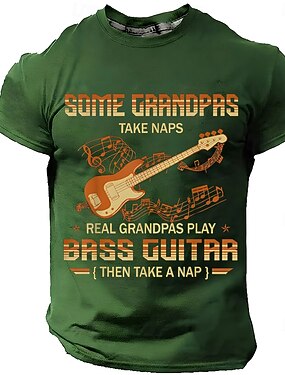 Herren-T-Shirt mit Bassgitarre-Motiv: Manche Opas machen ein Nickerchen, echte Opas spielen Bassgitarre und machen dann ein Nickerchen. Retro-Bassist-Vintage-Grafik-T-Shirt, normale Passform,