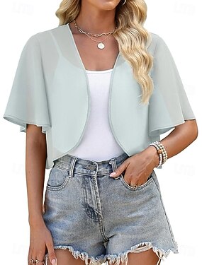 Damenumhang Bolero Umhänge für die Mutter Brautumhänge Umhänge für Hochzeitsgäste Elegant Damen Formaler Stil Kurzarm Chiffon Hochzeit Schals Mit Unifarbe Für Täglich Frühling & Sommer