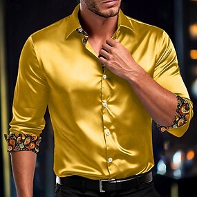 Herren Hemd Satinhemd Kleidhemd Freizeithemd Knopfhemd Einfach Formell Hochzeit Weiß Rote Blau Gold Langarm Revers Ganzjahres Bekleidung Knöpfe