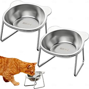 Erhöhte Edelstahl-Katzennäpfe mit Metallständer und rutschfestem Boden, 15 Grad geneigt, Doppelnapf für Futter und Wasser, geeignet für Katzen, Kätzchen und kleine Hunde