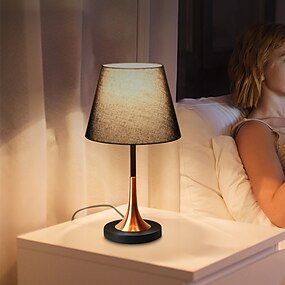 led tischlampe 14,8" hoch beige holz metall haferflocken stoff kegel trommel schirm für wohnzimmer haus nachttisch hom