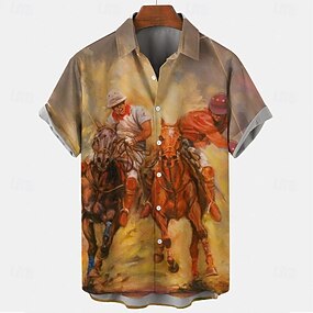 Herren Geometrisch Linie Polo Kurzarm Polo-Shirts Hemden mit Kragen Business-Casual Outdoor Athleisure Alltagskleidung 3D-Druck Knöpfe Sommer Blau Purpur Grün