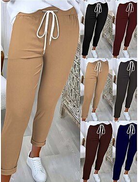 Damen Jogginghose Chinos Urlaub Streetwear Lässig Volle Länge Mittlere Taillenlinie Einfach Tasche Elastischer Bund Bequem Mikroelastisch Täglich Outdoor Straße Aprikose Schwarz Weiß Wein Sommer