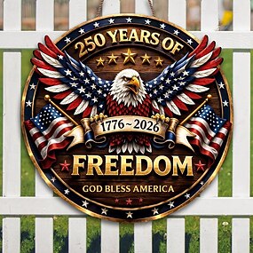 Patriotischer Türhänger aus Holz zum 250. Jahrestag der USA, Dekoration zum Unabhängigkeitstag mit Adler, Freiheitsglocke und Freiheitsstatue (1776–2026)