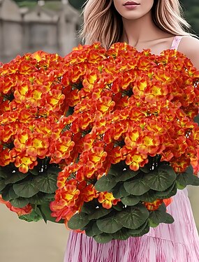 3 Stück UV-beständige künstliche orangefarbene Herbstblumen mit grünen Blättern, perfekt für den Innenbereich &Außendekoration, ideal für Gärten, Terrassen, Hochzeiten, Feierlichkeiten und besondere