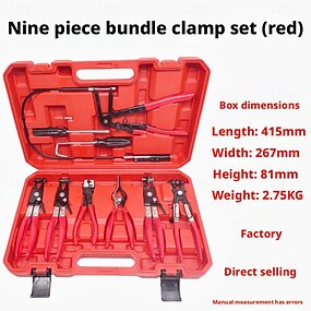 9-teiliges Hochleistungs-Schlauchschellenzangenset mit langem, drehbarem Arm und flexiblem Schlauchmechanismus – robuste Konstruktion, ergonomischer Griff, blaue Verpackung – für Kraftstoff, Öl,