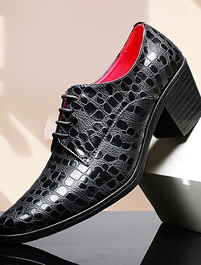 Schwarze Oxford-Schuhe aus Lacklederimitat mit Krokodilmuster für Herren – formelle Abendschuhe mit Blockabsatz, perfekt für Business, Hochzeiten und besondere Anlässe