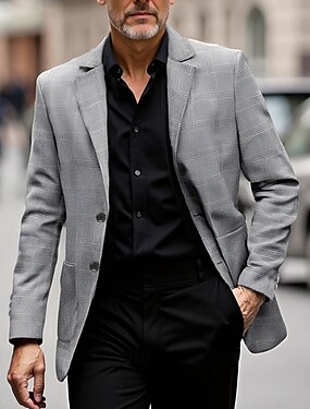 Herren Blazer Geschäft Cocktailparty Hochzeitsfeier Mode Lässig Frühling Herbst Polyester Karomuster Tasche Knöpfe Bequem Einreihig Blazer Dunkelbraun Dunkelgrau Hellgrau