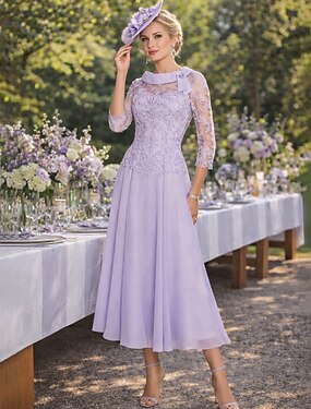 Schlauchkleid Tee-Länge Partykleid Cocktailkleid Kleid für Hochzeitsgäste Brautmutterkleid Dreiviertelarm Rundausschnitt Party Süß Hochzeitsgast Semi-Formal Chiffon Spitze mit Falten Perlenstickerei