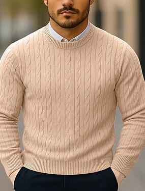 Herren Pullover Gerippt Zopfmuster Stricken Normale Oberteile Gestrickt Schmale Passform Einfach Rundhalsausschnitt Strickware Zeitgenössisch Lässig Alltagskleidung Bekleidung Herbst Ganzjahres
