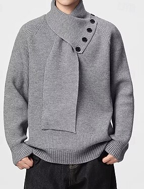 Herren Pullover Gerippt Stricken Normale Oberteile Cabrio Gestrickt Einfach Schal Strickware Zeitgenössisch Lässig Alltagskleidung Bekleidung Herbst Winter Schwarz Weiß M L XL