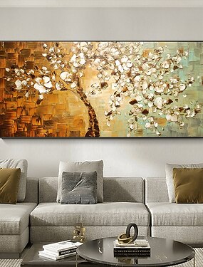 Handgefertigtes Ölgemälde auf Leinwand, Wandkunst, Dekoration, abstrakte Goldfolie, Blumenmalerei, weiße Blumen in Blüte, für Wohnkultur, gerollt, rahmenlos, ungedehnt