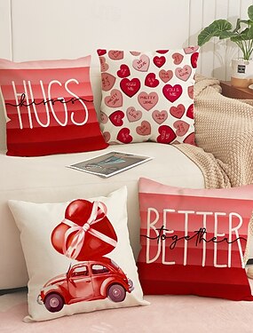 Kissenbezug zum Valentinstag, Kissen mit rotem Herz- und Buchstabenprint, gemütliche Sofadekoration, weiches Dekokissen fürs Wohnzimmer &Schlafzimmer, Valentinstagsgeschenk