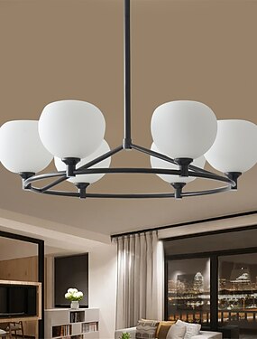 Kronleuchter 4/6 Licht nordische Pendelleuchte G9 Glaskugel Deckenleuchte Mid Century Zweig Kronleuchter Bettzimmer Arbeitszimmer Restaurant Beleuchtung, schwarz