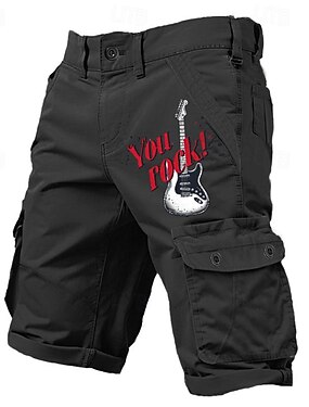 Herren Cargo-Shorts mit 'Du rockst!' Gitarren-Grafikprint lässige Sommer Strandmode