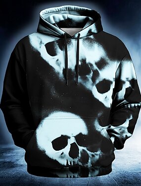 Herren Schädel 3D Kapuzensweatshirt Pullover Punk Übertrieben Gotisch Lässig Langarm Rundhalsausschnitt Mit Kapuze Streetwear Club Blau Rote Grün Grau Kordelzug Herbst Winter Designer S M L XL XXL