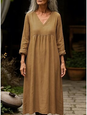 Damen Baumwoll-Leinen-Maxi-Kleid Shift-Kleid Lässig Täglich Reguläre Passform Schlicht 3/4-Ärmel Rundhals Blau Weiß Rot Dunkelgrün Sommer Frühling Herbst