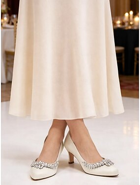 Brautmutter-Schuhe mit niedrigem Absatz – elegante champagnerfarbene Satin-Kleiderschuhe für formelle Hochzeiten