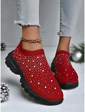 Damen Strass Flyknit Slip-On Sneaker – funkelnde Keilschuhe für Festivals, Reisen und den Alltag