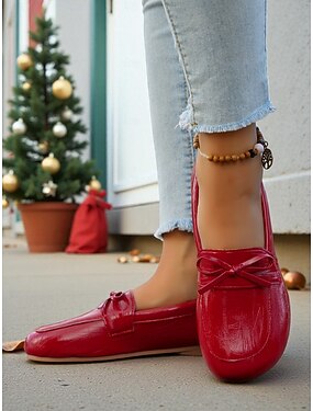 Damen Slipper weiche Schuhe breite Passform Komfortschuhe Weihnachten täglicher Muttertags-Schleifenflachabsatz runde Zehe klassische lässige Komfort Kunstleder Slipper schwarz rot beige