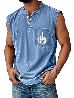 Herren Weste Jeans hemden Ärmellos Henley Sommer Grafik Einfach Mode Designer Basic Stückgefärbt Verblasst Vintage-Waschung Lässig Urlaub Straße Schwarz Dunkelgrün Hellblau Top T-Shirt für Herren