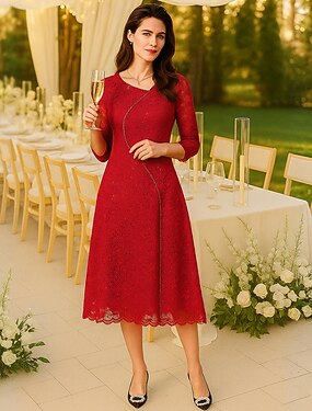 A-Linie Sheath Säule Tee-langes Knie-langes Spitzenkleid Abschlussballkleid Partykleid Brautmutterkleid 3/4-Ärmel V-Ausschnitt Scoop-Ausschnitt Elegant Vintage Party Spitze mit Spitzen-Beading