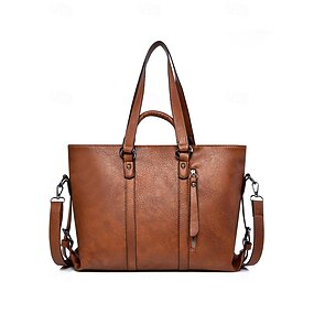 Mehrweg-Einkaufstasche aus Kunstleder für Damen mit Tragegriffen und Umhängegurt – große Vintage-Schulterhandtasche für Arbeit, Reisen und Freizeitausflüge