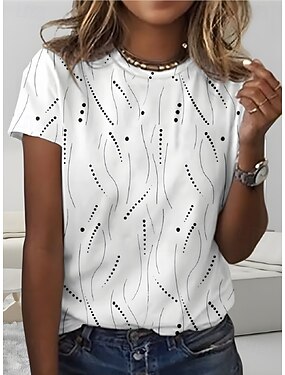 Damen T Shirt Druck Grafik Geometrisch Gestreift Vintage Stilvoll Klassisch Kurzarm Rundhalsausschnitt Normale Oberteile Täglich Blau Schwarz Weiß Königsblau Purpur Sommer Frühling