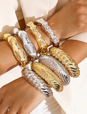 Samba Zubehör Abstrakte Skulpturale Armreif-Armbänder für Frauen - Modern Irreguläre Gold- Silberfarbene Armreifen Chunky Statement Schmuck Performance Kostüm