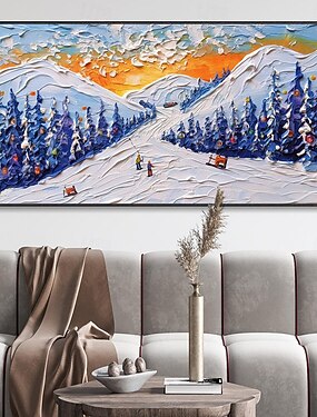 handgemaltes weißes Ski-Leinwand-Ölgemälde, handgefertigte Ski-Resort-Texturkunst, farbenfrohes Kieferngemälde, Handgemälde, Skisport-Kunst, Gemälde für Wohnzimmer, Dekoration, Kunst, frisch vermählte