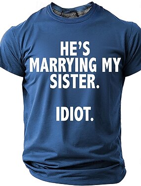 Herren-T-Shirt „Er heiratet meine Schwester“ – Witzige SMS an den Schwager – Humorvoll, sarkastisch, lustig, Scherzartikel, Geschenkidee – Normale Passform, Freizeitkleidung für Hochzeit,