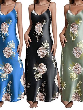 Damen Nachthemd Lässig Weich Satin Blumen Rückenfrei Täglich Heim Bett Ärmellos Träger Blau Schwarz Rote Grün Sommer Lässiger Schnitt