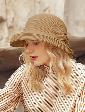 Hüte Stroh Synthetische faser Eimerhut Schlapphut Strohhut Hochzeit Teegesellschaft Elegant Hochzeit Mit Schleife Unifarbe Kopfschmuck Kopfbedeckung