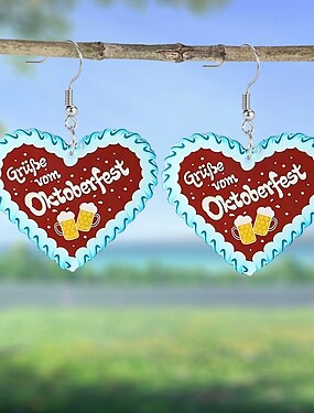Oktoberfest Ohrringe Bier Herz Bayerisch Deutsch München Wiesn Damen Karneval Party Bier Festival Stoff im traditionellen Stil