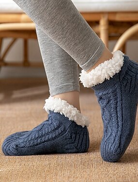 Winterfleece-gefütterte Bodensocken, dicke, warme, rutschfeste Hausschuhe für Damen &Verwendung im Haus für Männer