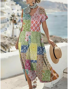 Damen Minikleid Sommerkleid Freizeitkleid Minikleid Lässig Täglich Strand Urlaub Normale Passform Blumen Grafik Böhmische Ärmellos V Ausschnitt Blau Rote Purpur Grün Sommer Frühling