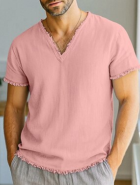 Herren T-Shirt Leinen-T-Shirt Kurze Ärmel V Ausschnitt Sommer Frühling Einfarbig Einfach Mode Designer Basic Weich Urlaub Lässig Alltagstauglich Weiß Rosa Burgunderrot Top T-Shirt für Herren