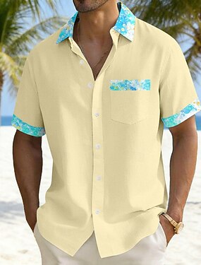 Herren Bunt Geometrisch Abstrakte Kunst Hemd Sommerhemd Knopfhemd Kurzarm Modisch lässig Streetwear Urlaub Ferien Sommer Umlegekragen 3D-Druck Eine Tasche vorne Leinenähnliches Hemd Blau Weiß Gelb
