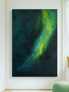 abstraktes strukturiertes grünes Ölgemälde auf Leinwand original dunkle minimalistische Wandkunst tiefes modernes Acrylbild für Wohnzimmer / Galerie Dekor