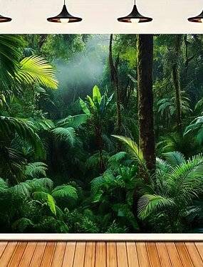 Tropischer Regenwald, Natur, grüne Palmen, Farnblätter, nebliger Dschungel, tiefer Wald – botanischer Wandteppich, Wandbehang, Hintergrund für Schlafzimmer, Wohnzimmer, Heimdekoration, Wandkunst
