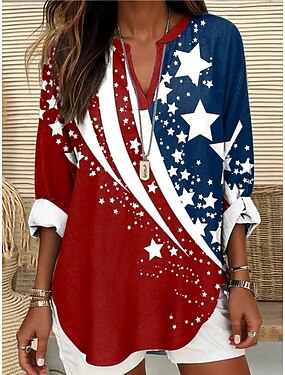 Amerikanischer Unabhängigkeitstag Damen Bluse Druck Flagge Lässig Kurzarm V Ausschnitt Normale Oberteile Täglich Marineblau Khaki Rot / Blau Leicht Blau Sommer Frühling