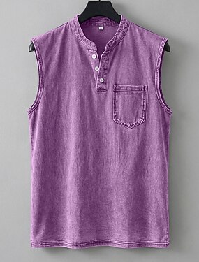 Herren Tank Top Weste Baumwoll-T-Shirt Gewaschenes Hemd Ärmellos Henley Sommer Einfach Mode Designer Basic Tasche Stückgefärbt Gewaschen Lässig Urlaub Straße Schwarz Hellgrün Rosa Top T-Shirt für