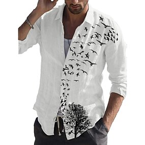Herren Baum Vogel Hemd Knopfhemd Langarm Mode Designer Lässig Outdoor Lässig Täglich Frühling & Herbst Umlegekragen Druck Button-Down Weiß