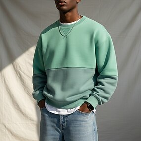 Herren Sweatshirt Pullover Kapuzensweatshirt Hellgrün Rosa Marineblau Grau Leicht Blau Rundhalsausschnitt Einfach Patchwork Farbblock Lässig Täglich Sport & Outdoor Streetwear Cool Sportbekleidung