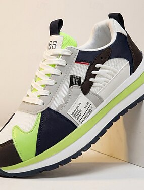 Retro-Laufschuhe für Herren in Weiß, Marineblau und Grün mit Farbblock-Design. Leichte Schuhe zum Gehen, Trainieren und für den Alltag.
