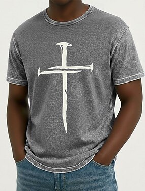 Herren Bibel Kreuz Jesus T-Shirt Mineral Wasch Tee Kurzarm T-Shirt Acid Wasch Rundhalsausschnitt Shirt Religiös Vintage Retro Casual Daily Blau Lila Grau Sommer Frühling Kleidung Apparel